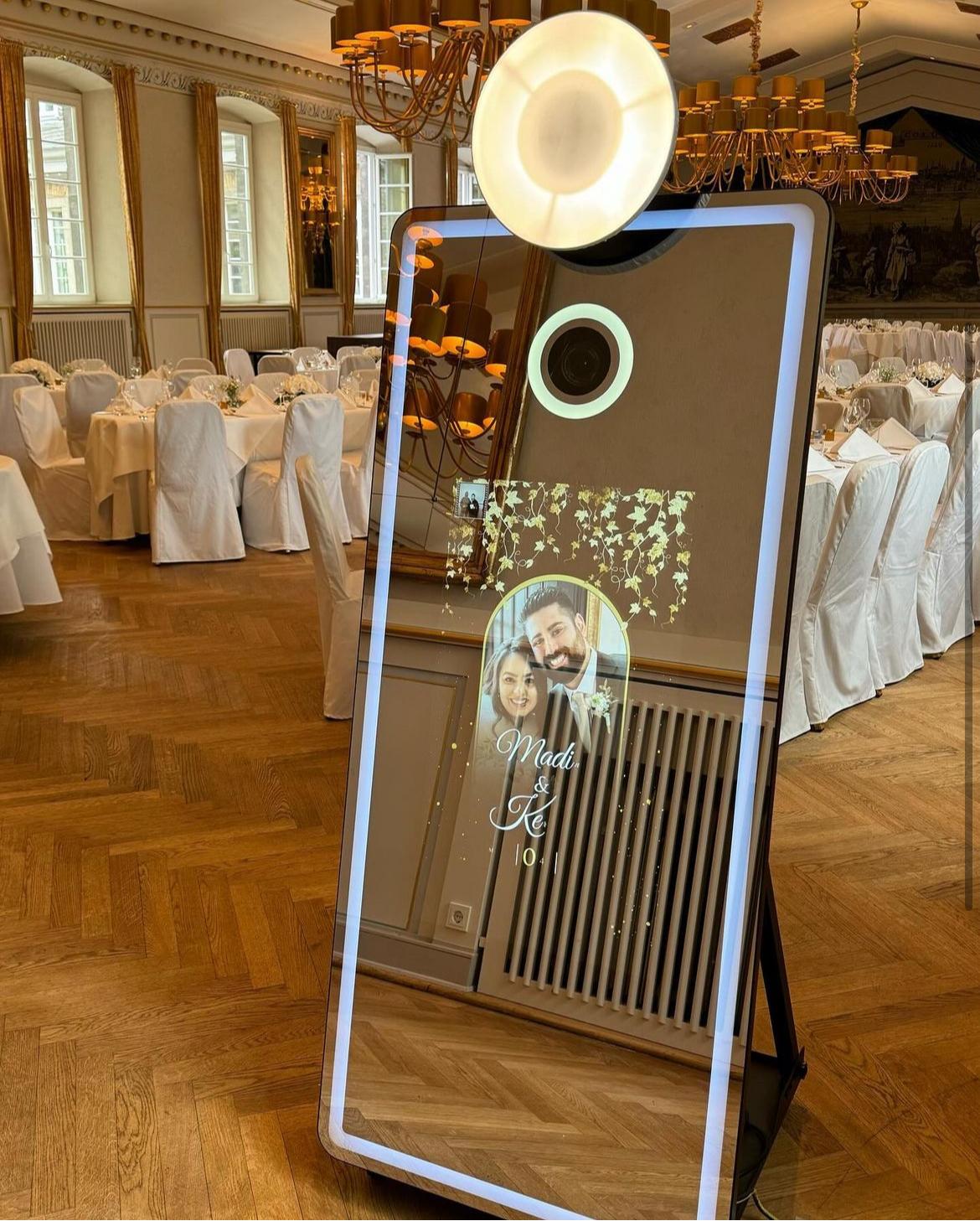 Unser Fotospiegel sorgt für Partyspaß und kreative Erinnerungen auf Hochzeiten, Geburtstagen und Firmenfeiern.